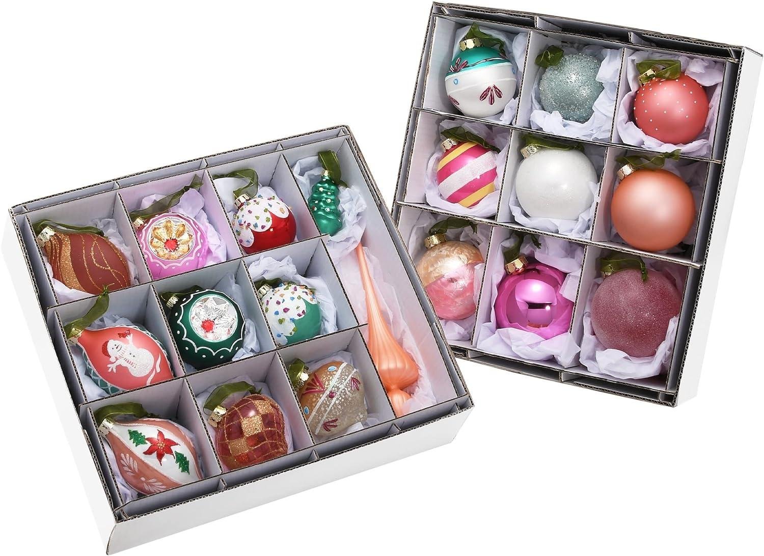 20-Piece Christmas Tree Ornament Set Be Merry Collection 4 in Pink Glass Handmade