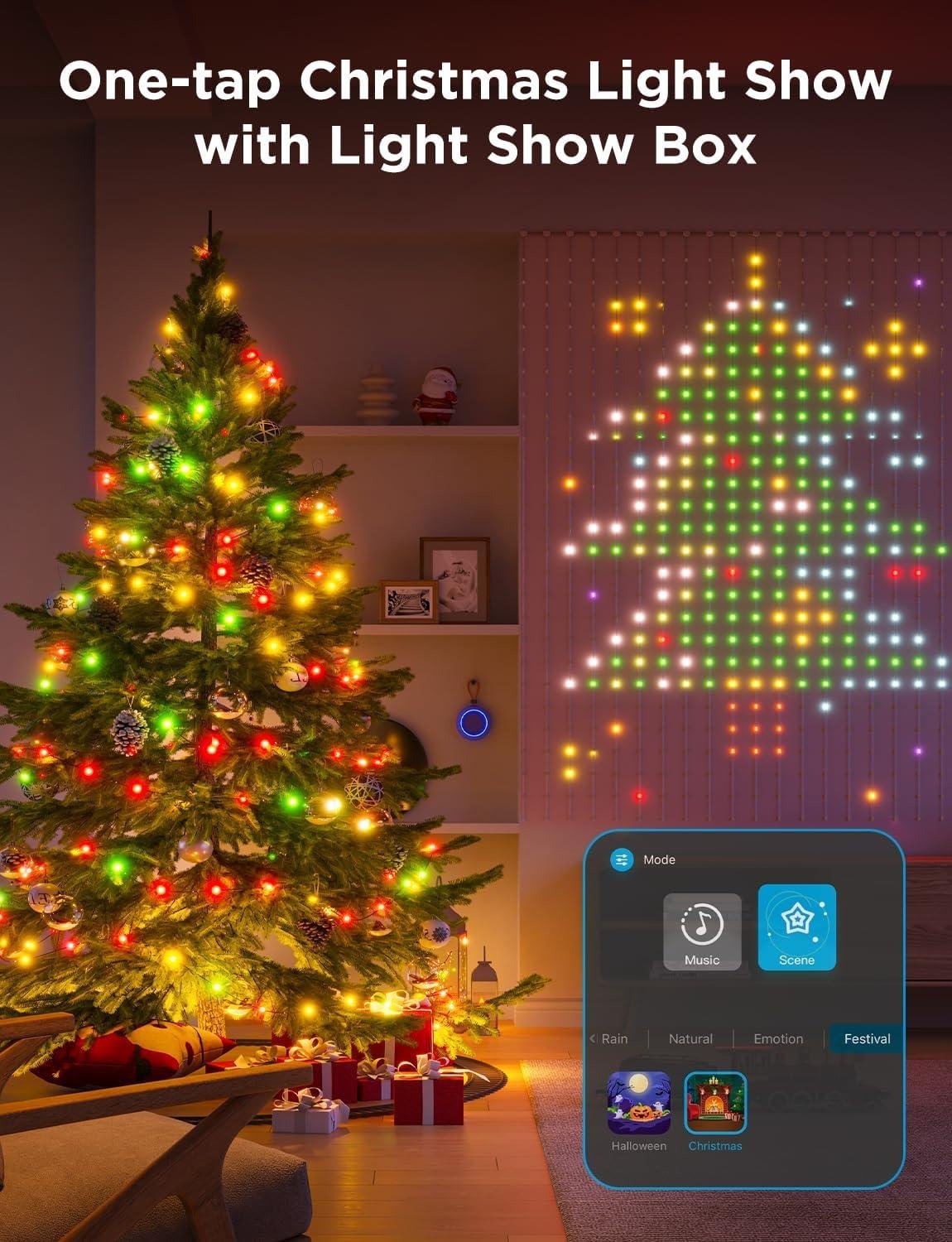 Govee Christmas Lights Set, Includes Curtain Lights, Christmas String Lights and Light Show Box, Christmas Decorations for Indoors and Outdoors, Christmas Light Show Kit, Preset Holiday Scene Modes