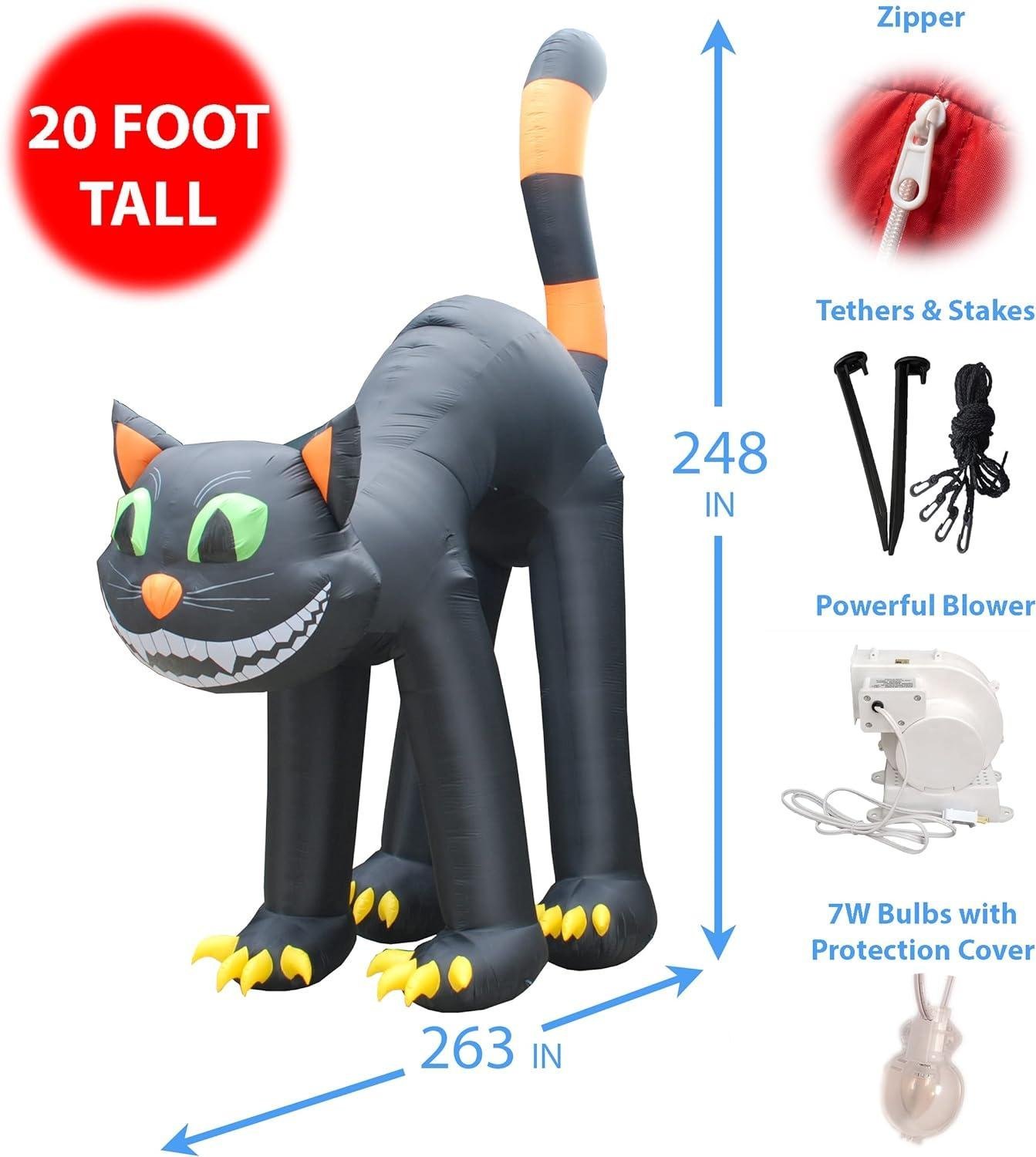 20 Foot Huge Lighted Halloween Inflatable Black Cat Lights Decor Outdoor Indoor Holiday Decorations, Blow up Lighted Yard Decor, Giant Lawn Inflatables Home Family Outside Decor