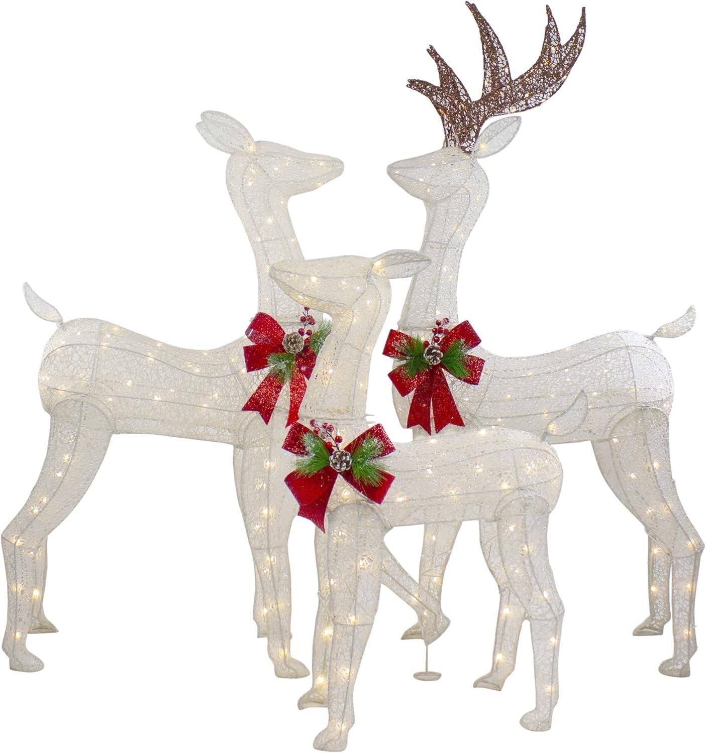 Winter Wonder Lane LED 3-Piece Elegant White Deer Family Set Holiday Seasonal Christmas Indoor/Outdoor Light-Up Decor