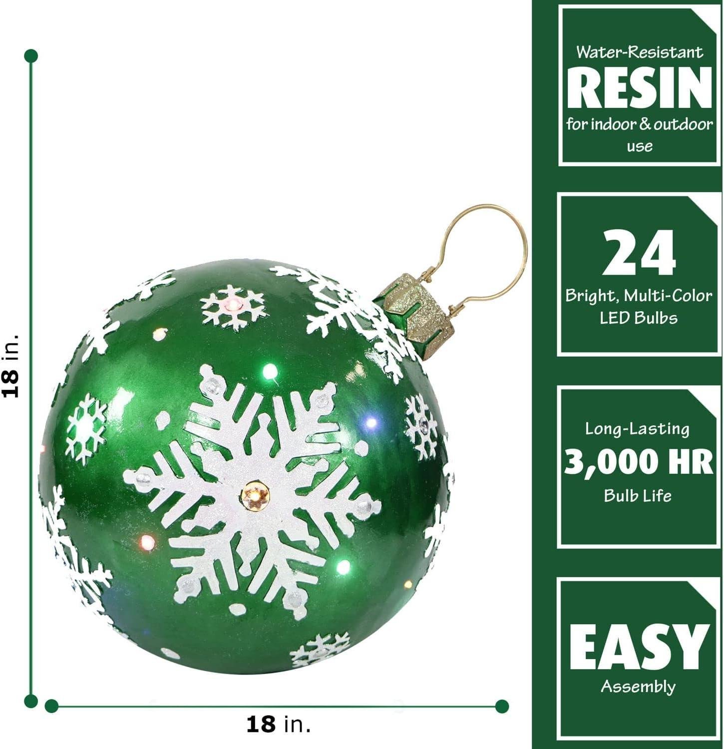 OVERSIZED: Jeweled ball ornament with snowflake design measures 18″H x 16.5″W x 19.25″D and weighs 8 lbs. PRE-LIT ULTRA-BRIGHT: 24