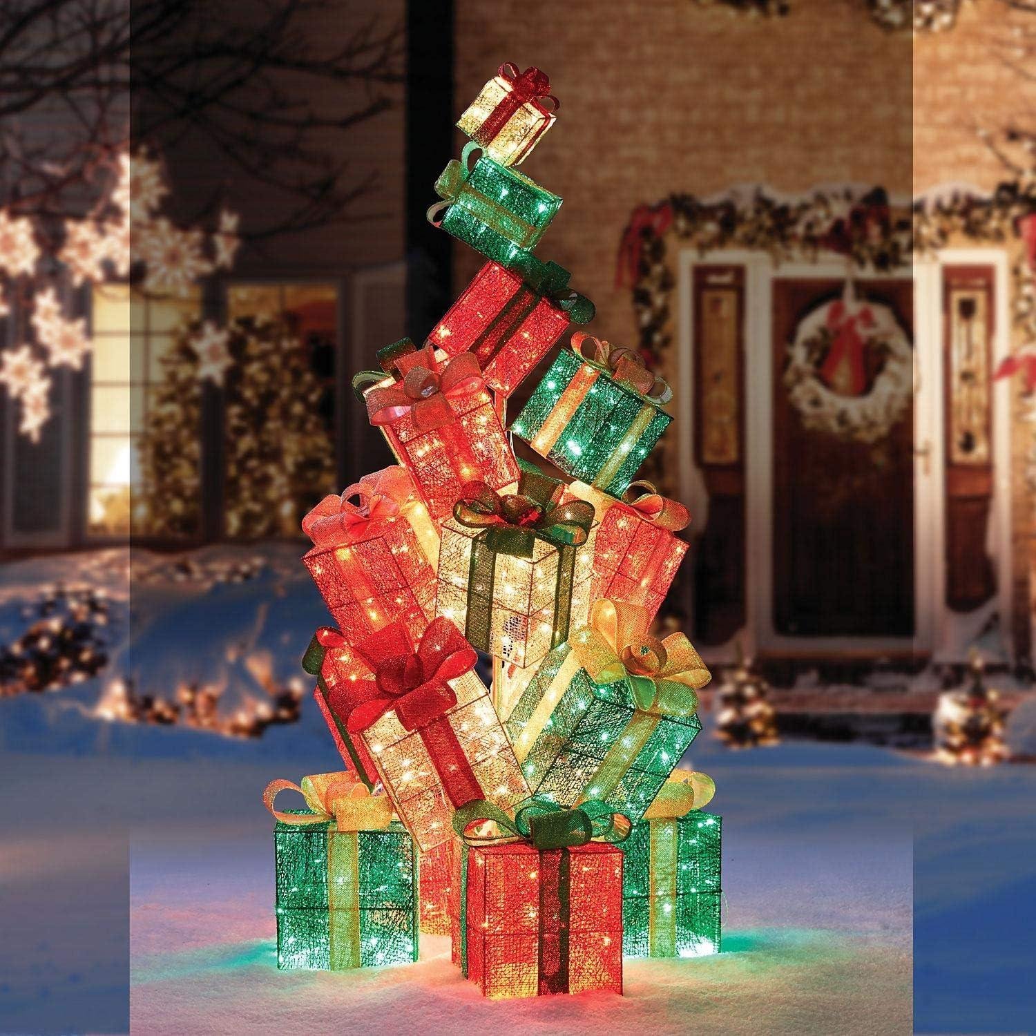Everstar LED Christmas Holiday Lighted Twinkling 18-Present Gift Box Tower Yard Decor