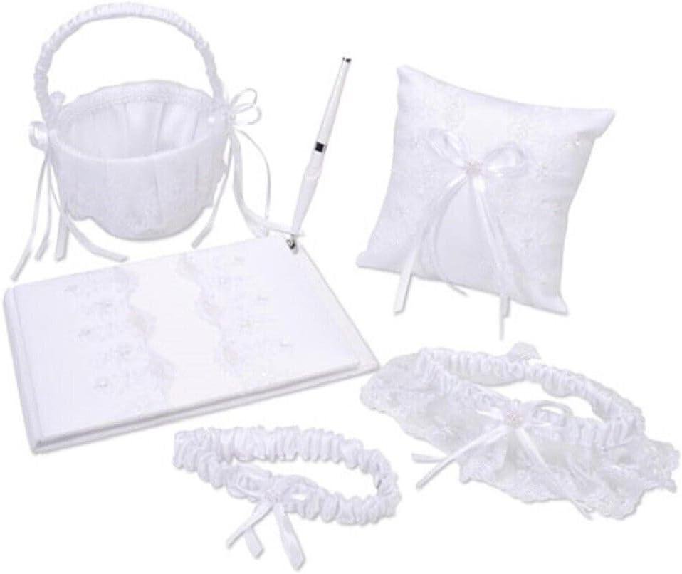 “Holiday Gift and Decorations” White and Pearl Accent Wedding Bridal Guest Book 5 Piece PRODUCT DESCRIPTION White and Pearl Accented