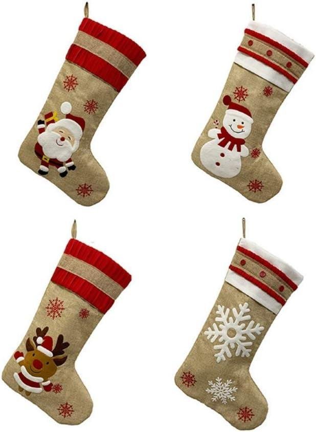 ZMDZA 4PS Christmas Decorations Santa Snowman Elk Stockings Xmas Flax Stocking Tree Pendant Socks Gift Bag Merry Christmas