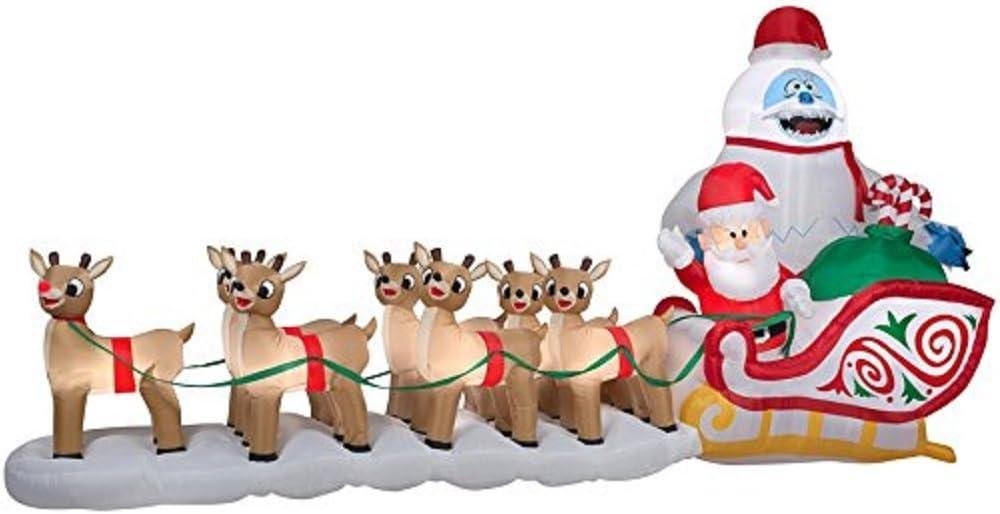 Christmas Colossal 16.5′ Rudolph w/ Santa & Bumble In Sleigh Airblown Inflatable Holiday Yard Decoration