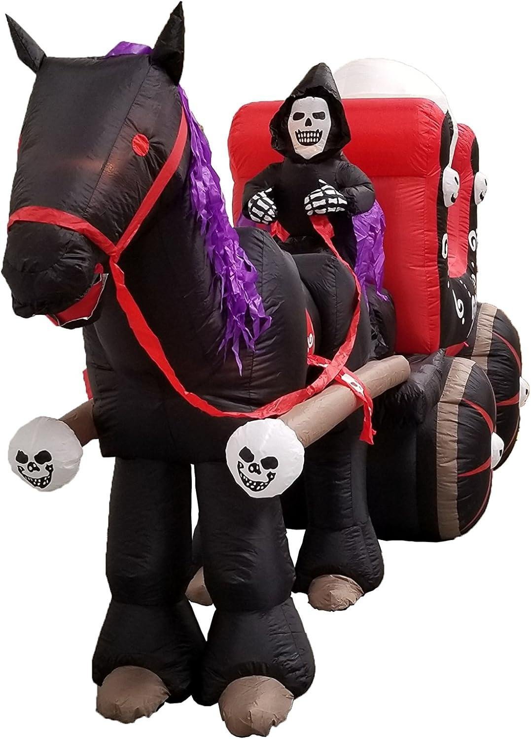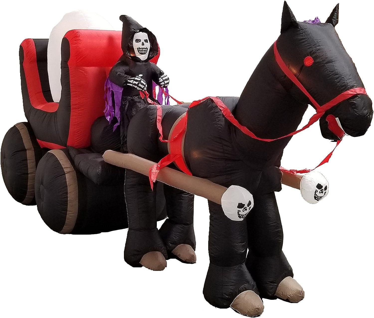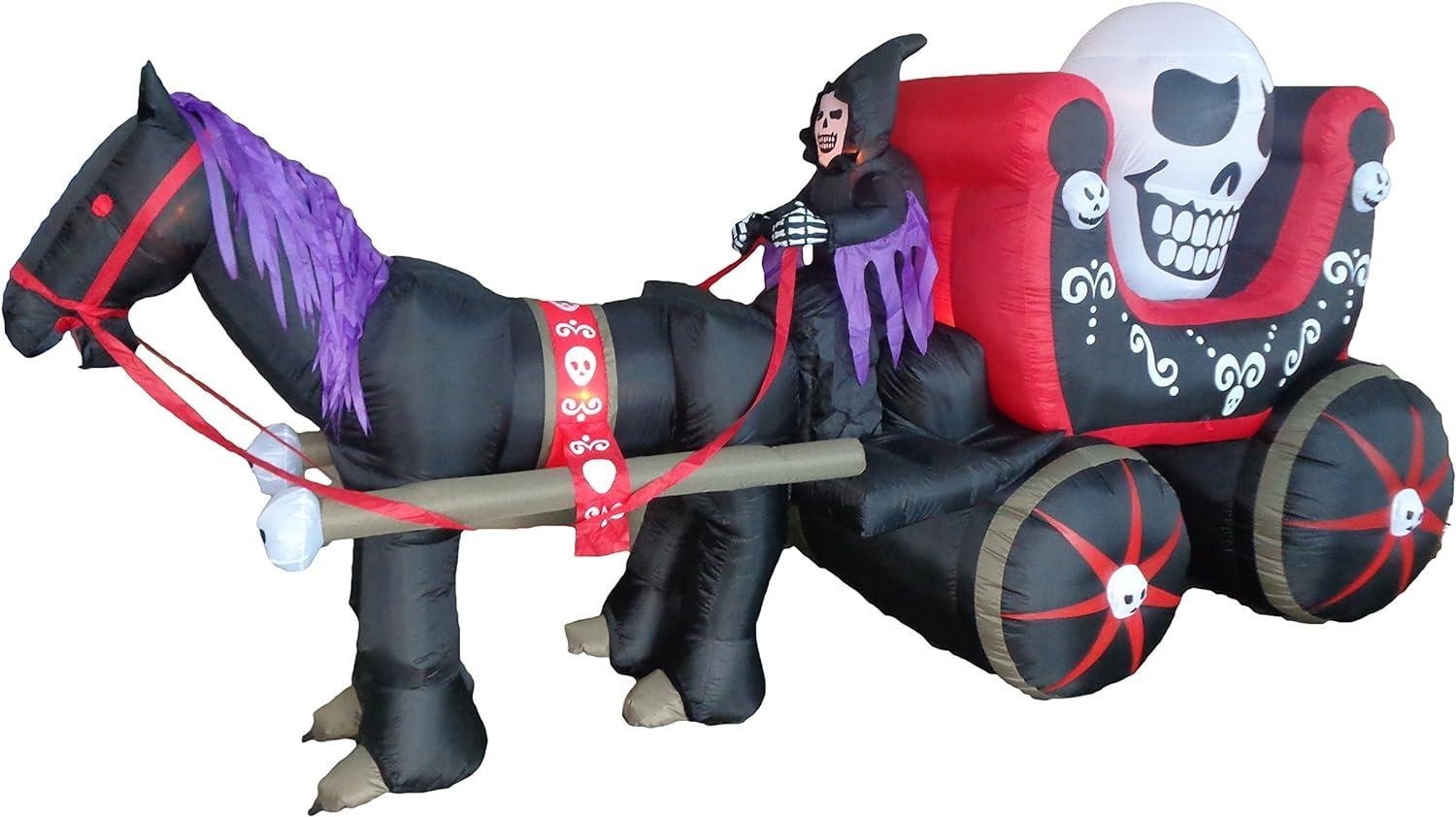12 Foot Long Halloween Inflatable Carriage with Skeleton Ghost Skull Lights Decor Outdoor Indoor Holiday Decorations, Blow up Lighted Yard Decor, Lawn Inflatables Home Family Outside