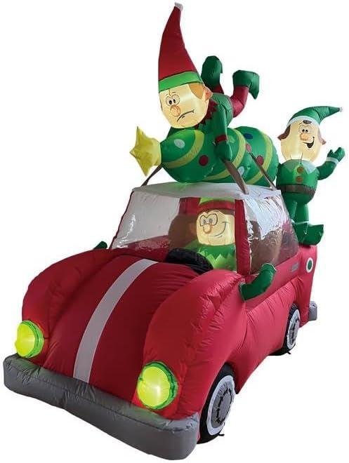 Holiday Accents Gemmy 7.5′ Wide Santa with Reindeer and Penguin Friends in Holiday RV Christmas Inflatable Indoor/Outdoor Decoration, Multi (24217)