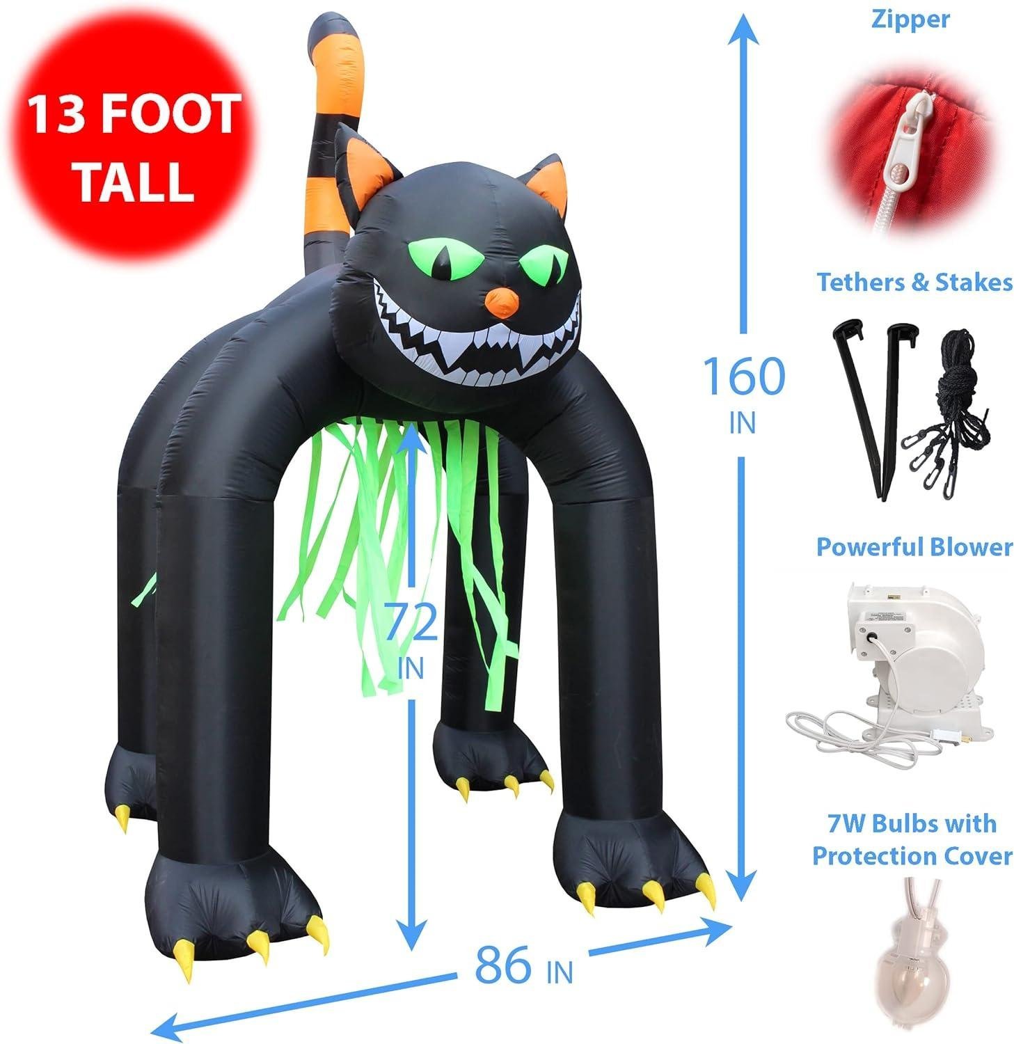 Jumbo 13 Foot Tall Halloween Inflatable Black Cat Archway Outdoor Indoor Holiday Decorations, Blow Up Lights Lighted Yard Decor, Giant Lawn Inflatables for Home Family Party Prop