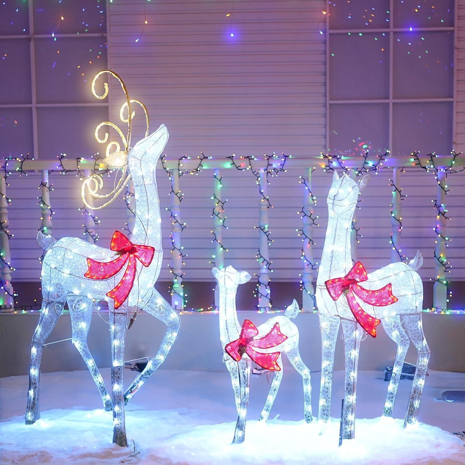 Hourleey Outdoor Christmas Decorations, 3-Piece Large Reindeer?Family 3D Lighted Xmas 459LED Waterproof Decor for Indoor Outdoor Garden Yard Lawn Holiday Party