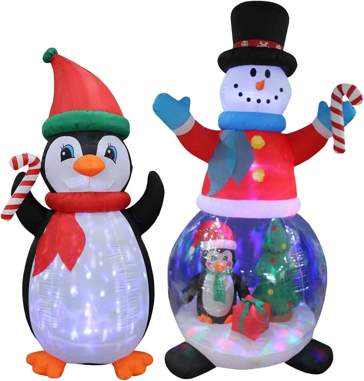 Two Christmas Party Decorations Bundle, Includes 8 Foot Long Christmas Inflatable Santa on Sleigh with 3 Reindeer and Christmas Tree, and 5 Foot Tall Huge Christmas Inflatable Snowmen Snowman Campfire