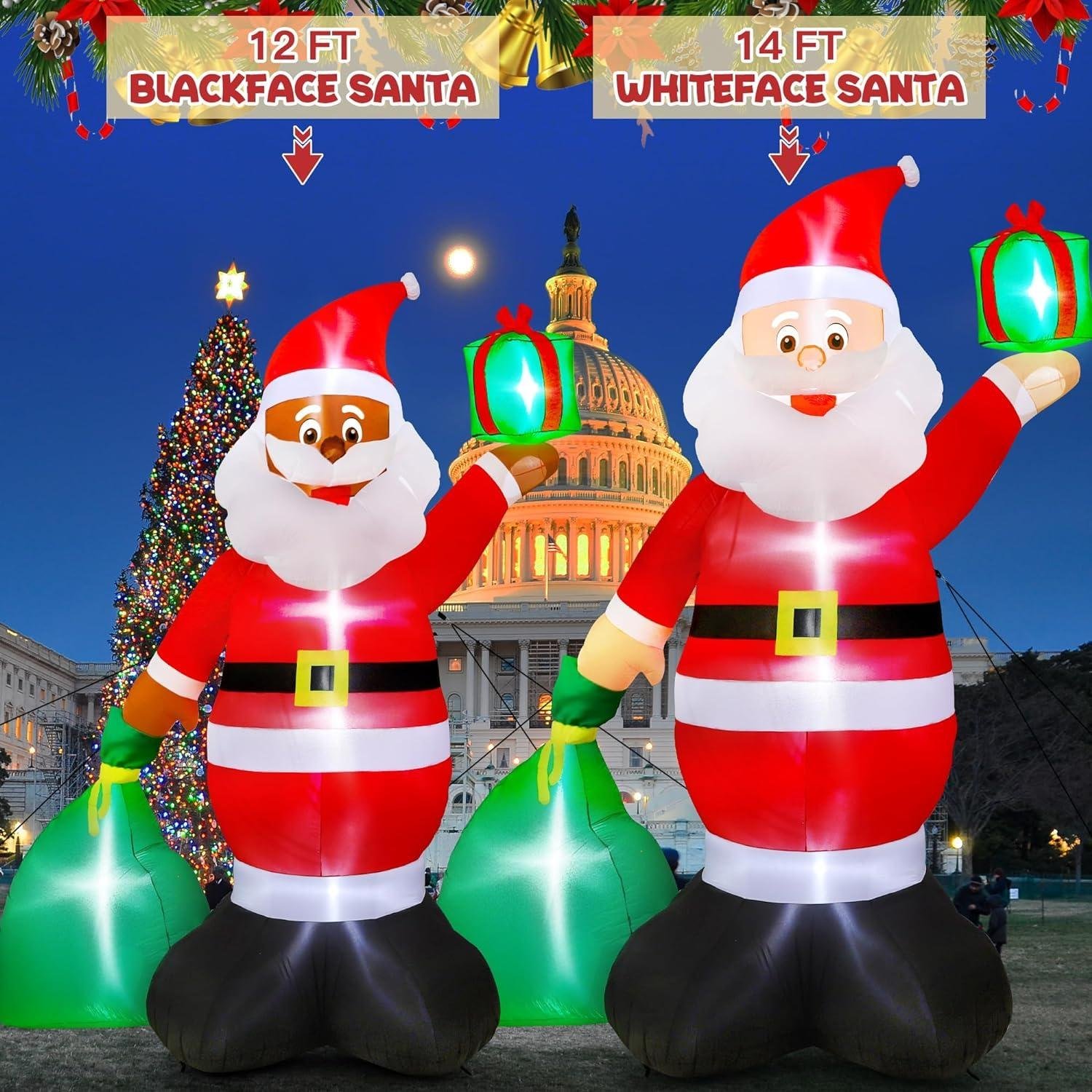 14FT Christmas Santa Inflatables, Giant Inflatable Santa with Gift Bag, Blow Up Christmas Santa Claus with 6pcs LED, Inflatable Santa Claus Outdoor Decorations for Party Holiday Lawn Yard Archway