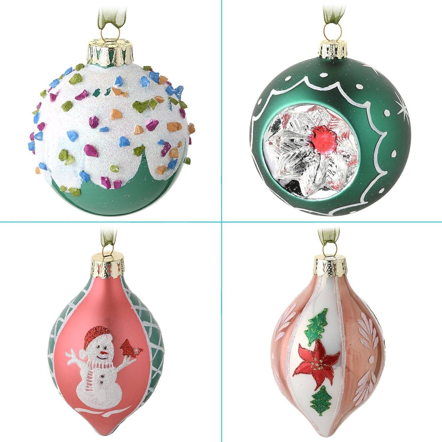 - 20-piece Christmas Tree Ornament Set Be Merry Collection 4 In Pink Glass Handmade