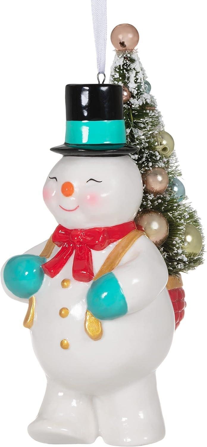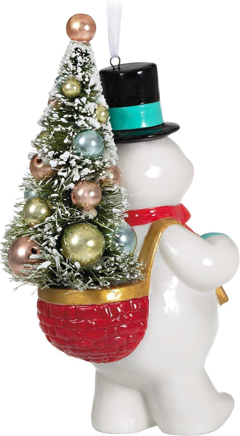 Hallmark Keepsake Christmas Ornament 2021, Vintage Snowman with Tree, Porcelain