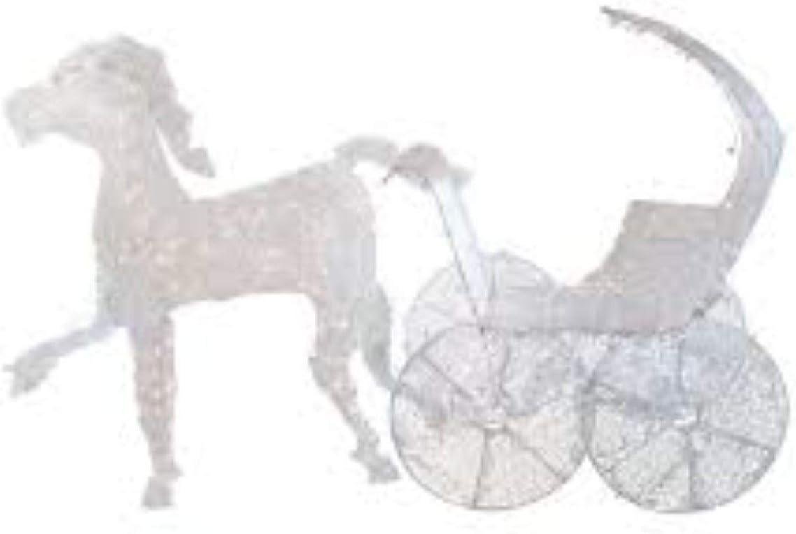 - White Lighted Horse And Carriage Christmas Yard Art Decoration