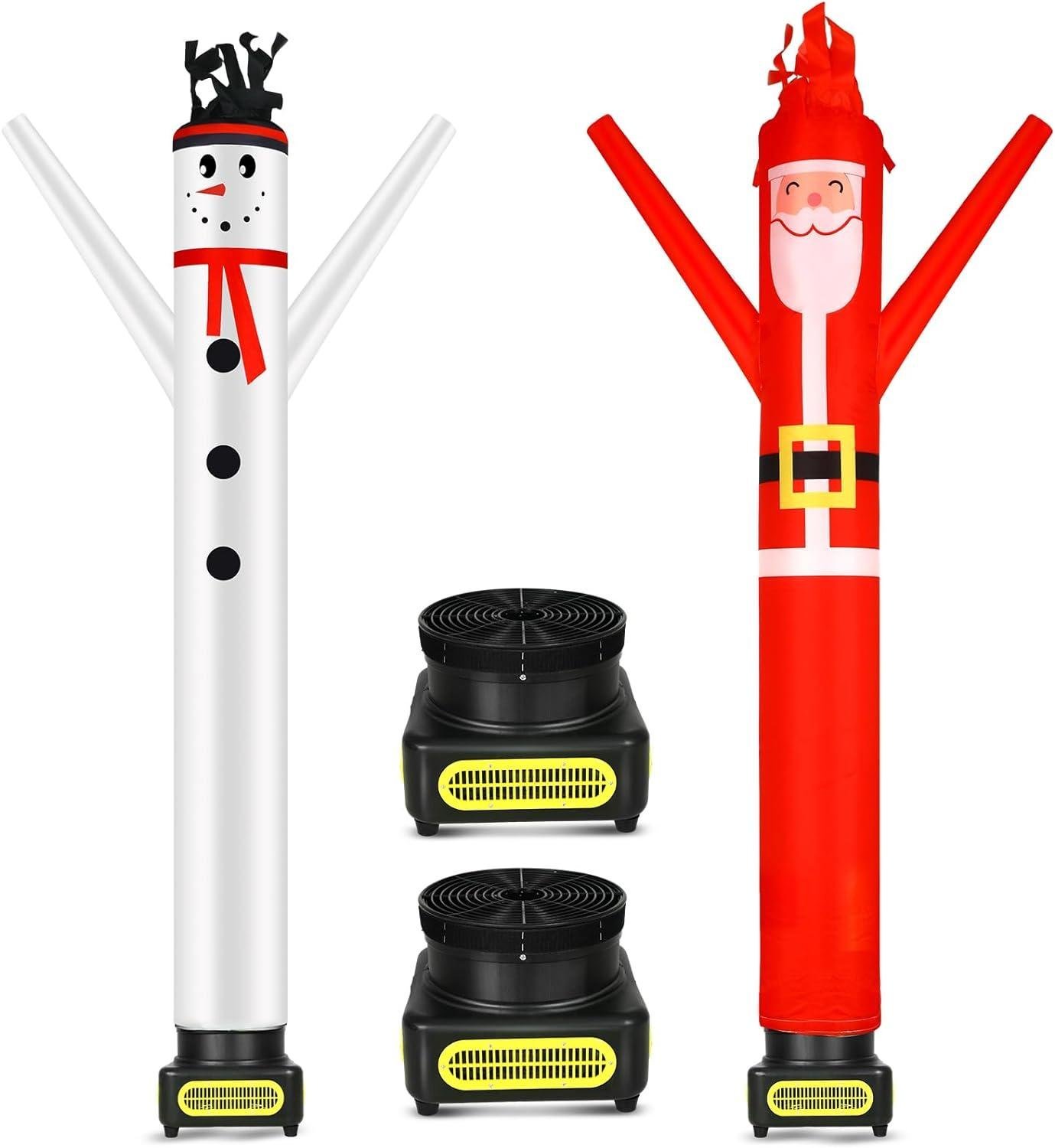 Two Christmas Party Decorations Bundle, Includes 8 Foot Long Christmas Inflatable Santa on Sleigh with 3 Reindeer and Christmas Tree, and 5 Foot Tall Huge Christmas Inflatable Snowmen Snowman Campfire