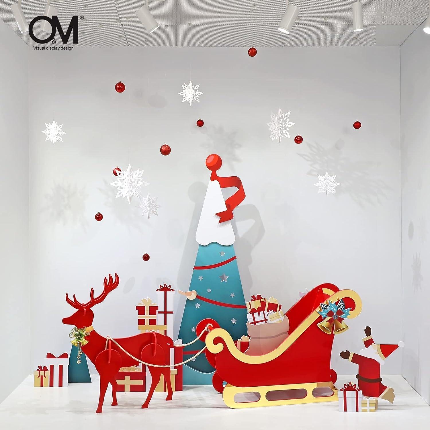 O&M Christmas Decoration Elk Pulling Cart Shop Window Display Props Decorations Indoor