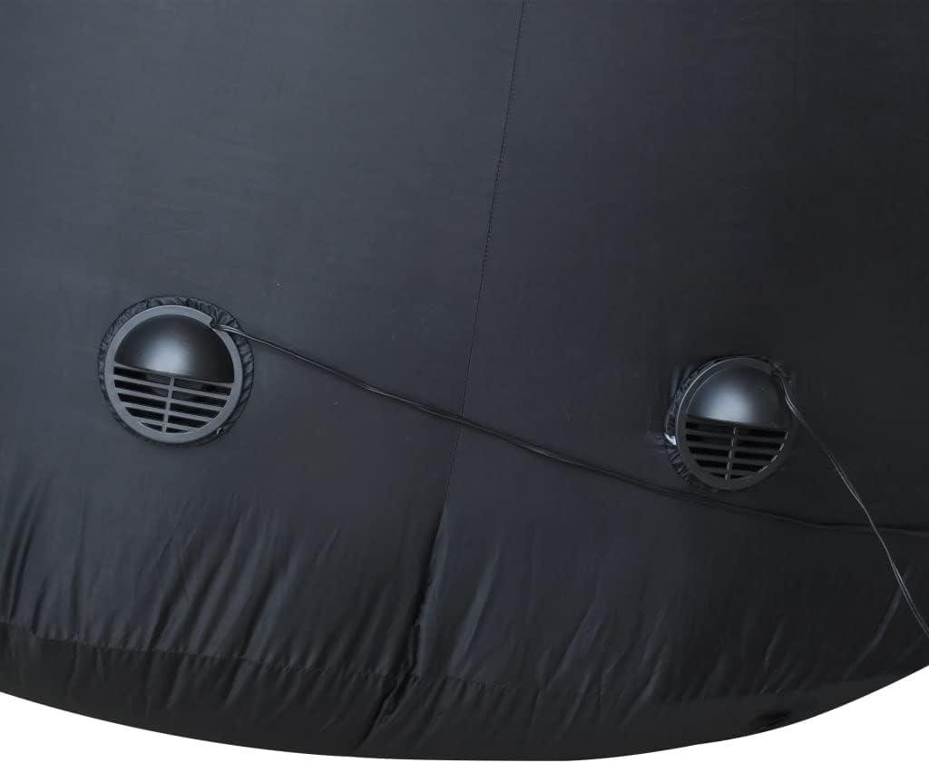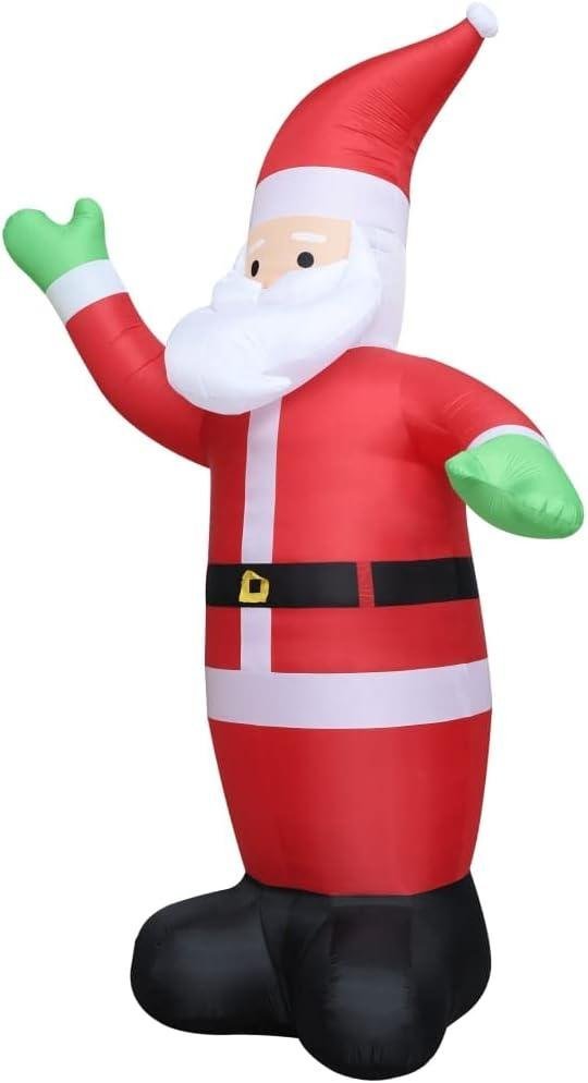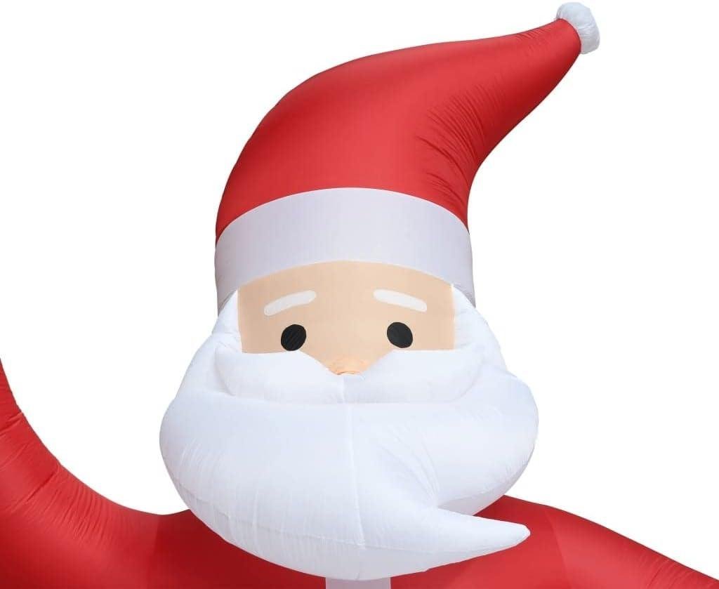 - The Inflatable Santa is made of high quality polyester fabric and self-inflates in seconds. The inflatable unit has 2 integrated blowers and is equipped with 6 high-powered LEDs that emit bright light.