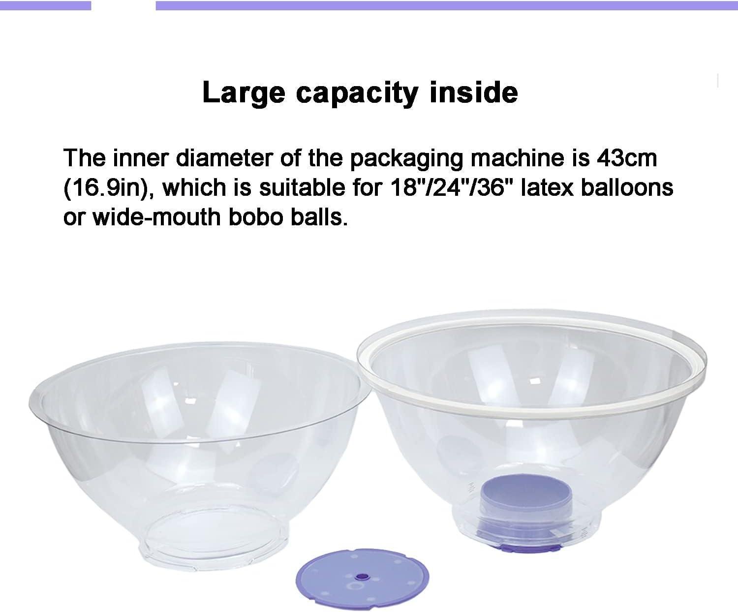 - Balloon Stuffing Machine: Balloon Stuffing Machine diameter 43cm, outer diameter 47cm, total height 50cm, suitable for: 18/24/36″ latex ball, 24″ wide mouth bubble ball.You can get 2 hemispheres, 1 silicone ring, 1 inflation tube, 1 inflation pump, 1* flaring pliers.