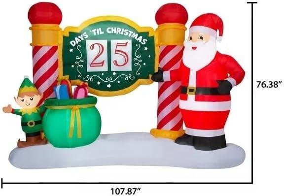 Countdown to Christmas with Santa and Elf Holiday Inflatable 9 Foot Wide with Repair Patch