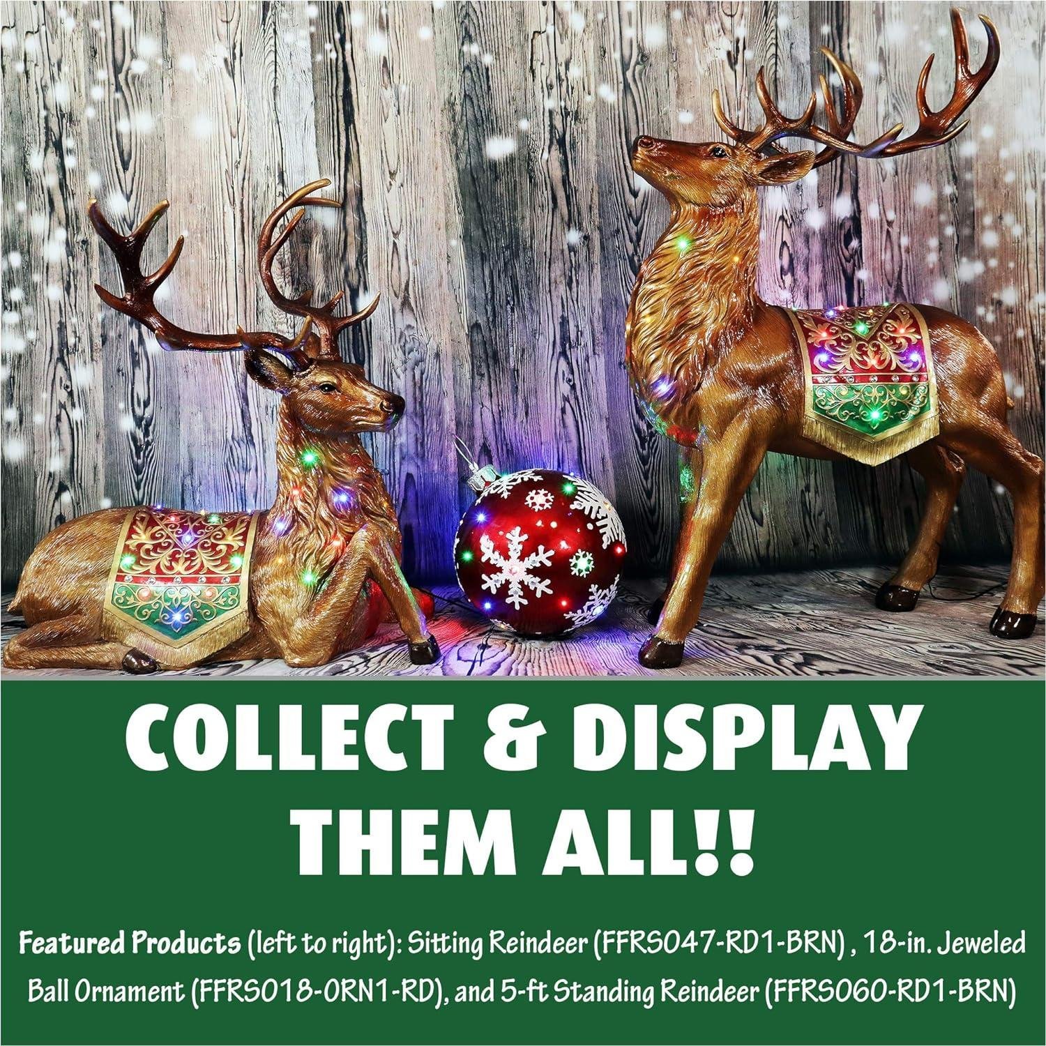 Fraser Hill Farm FFRS018-ORN1-RD Indoor/Outdoor Oversized Jeweled Ball Ornament w/Long-Lasting LED Lights, Red Holiday Decoration, 18