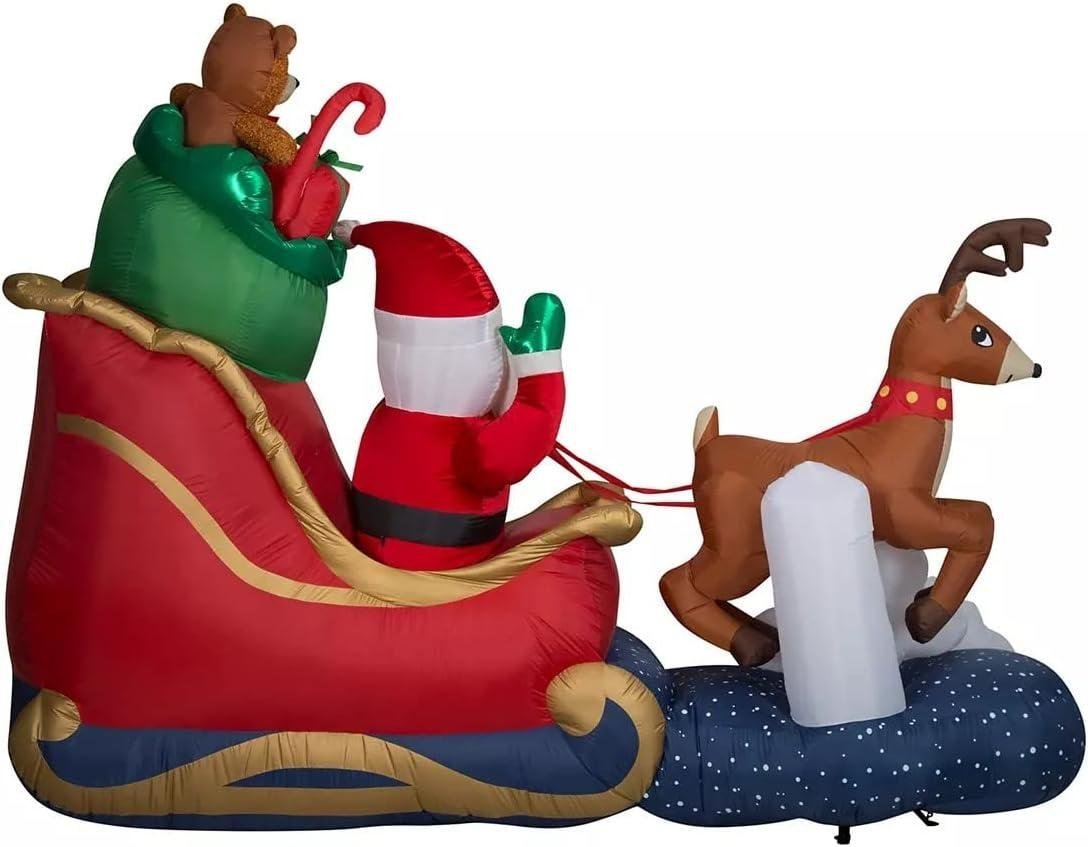 Gemmy 9.5′ Wide Christmas Inflatable Santa’s Flying Sleigh with Reindeer and Bag of Toys Indoor/Outdoor Holiday Outdoor Decoration