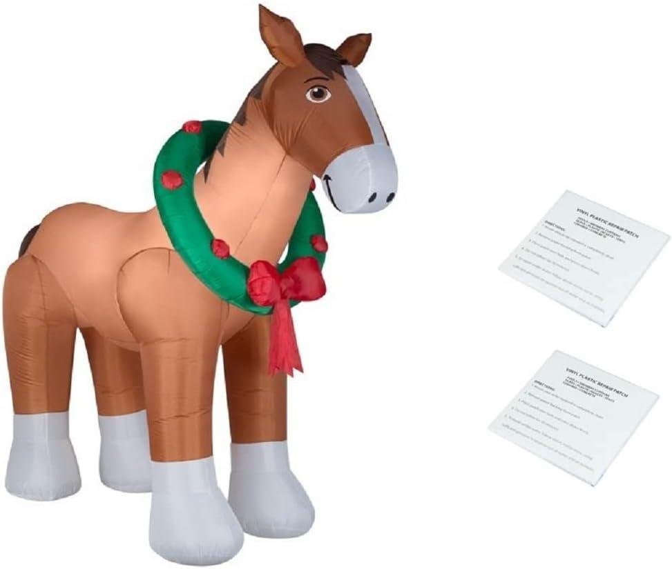 Two Christmas Party Decorations Bundle, Includes 5.3 Foot Tall Christmas Inflatable Santa Claus Drive Tractor, and 9 Foot Long Christmas Inflatable Santa Claus Reindeer in Stable with Christmas Tree