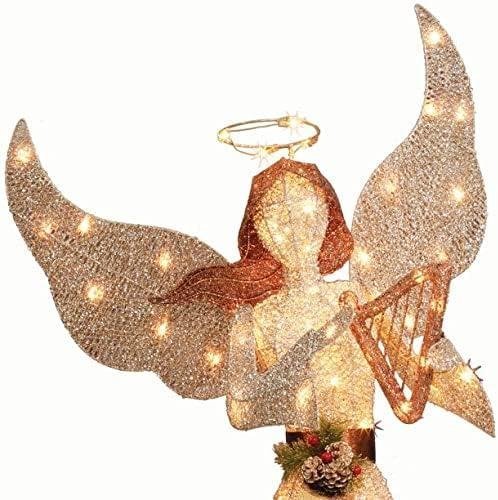 Global Merchandise Holiday Time Light Up Glitter Christmas Angel Outdoor Decoration 60inch, Yellow Brown