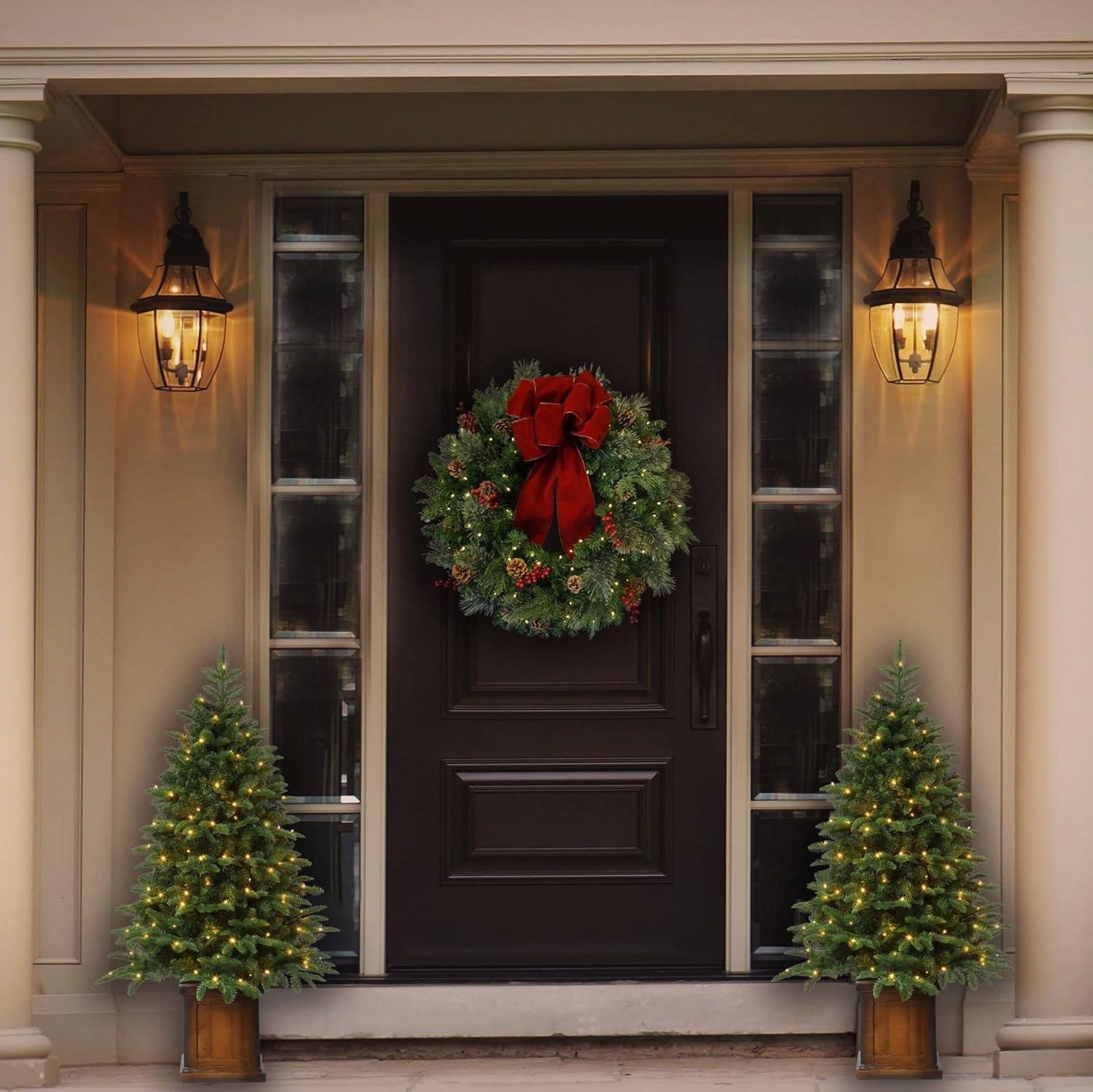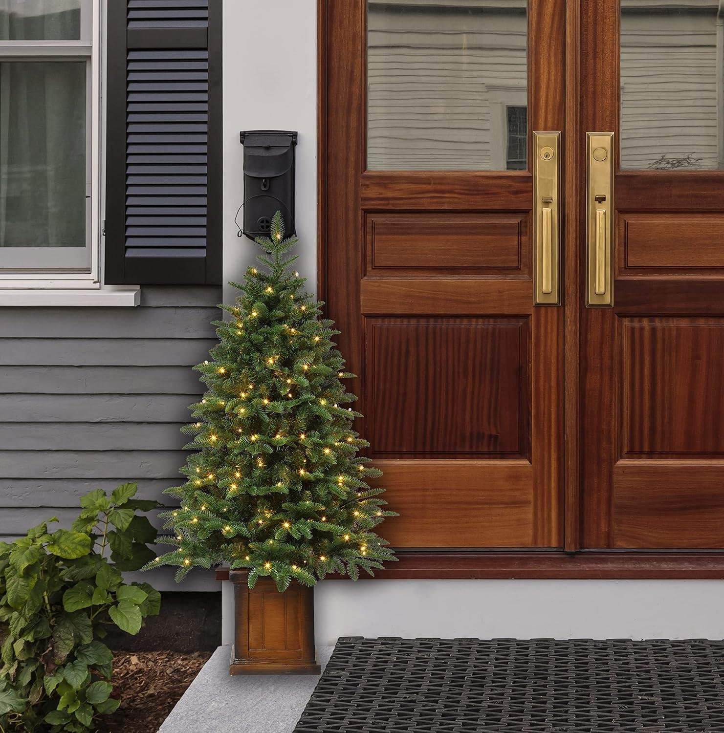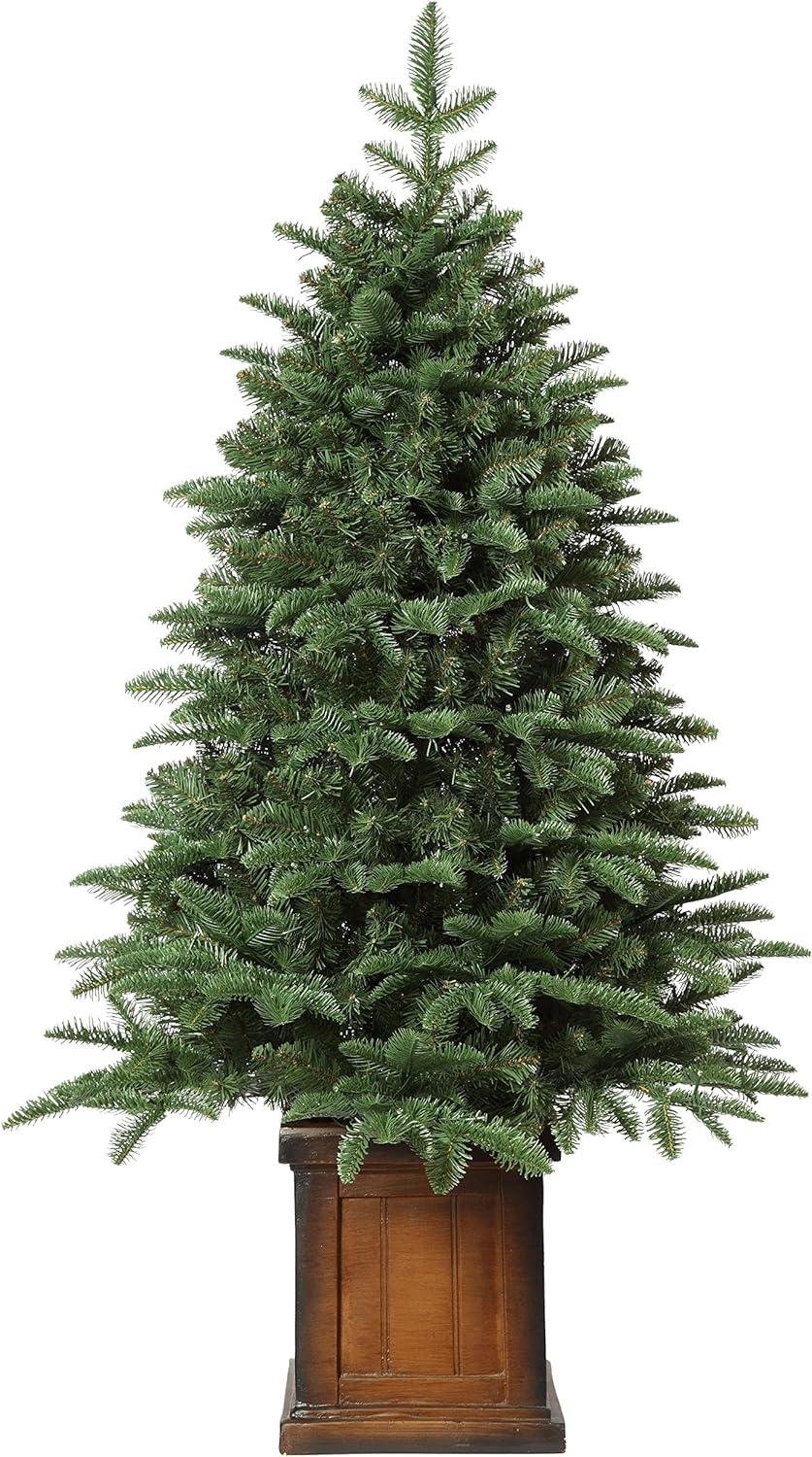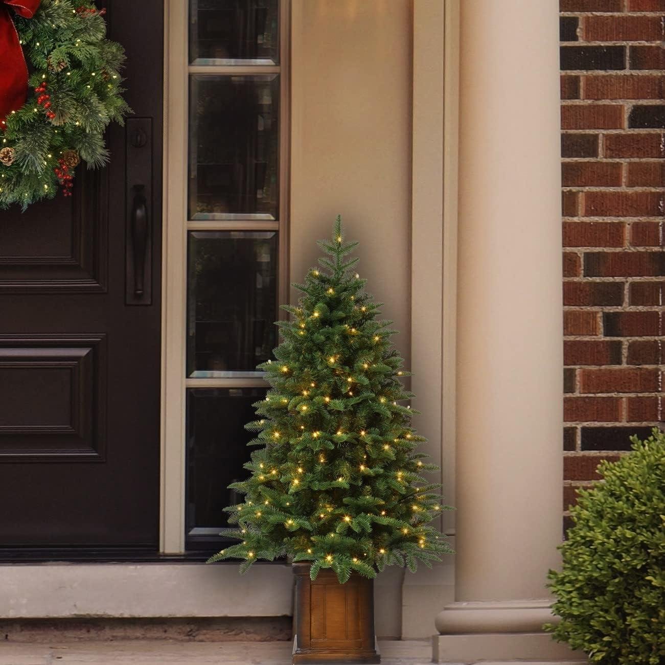 Haute Decor Noble Fir Pre-Lit Potted Christmas Tree – 4.5 Feet Tall with 200 Warm White Energy Efficient LED Lights – Realistic Lighted Tree in Sturdy Planter