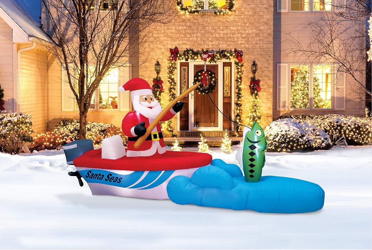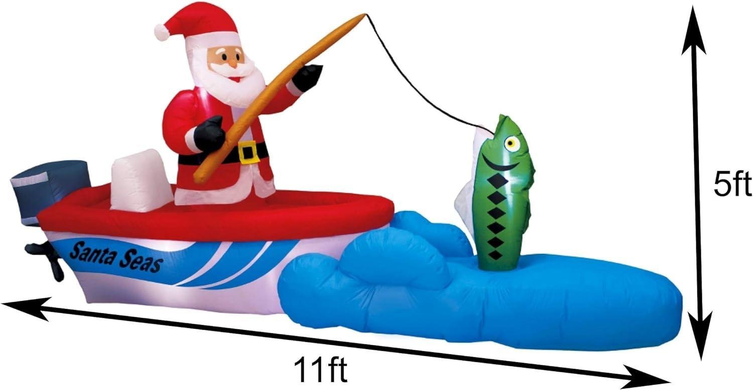 Holiday Times 11ft Wide Santa Seas Fishing Santa Yard Inflatable A Holiday Company