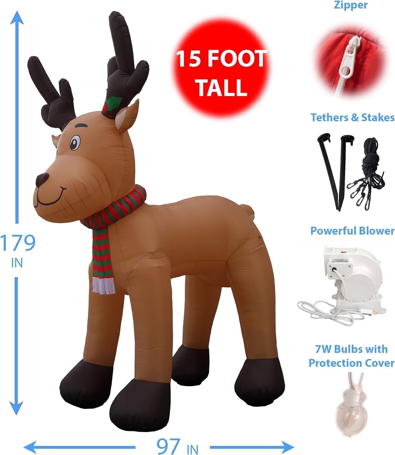 Jumbo 15 Foot Tall Christmas Inflatable Reindeer Outdoor Yard Decoration