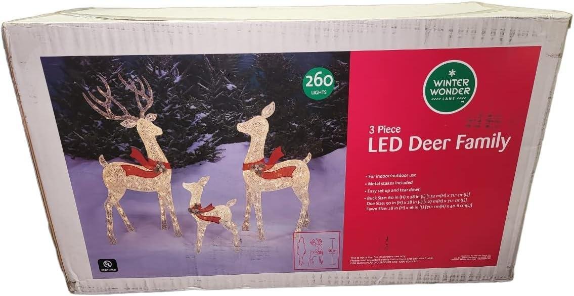 Large 3-Piece LED Lighted Holiday Deer Family – 60 inch Buck, 50 inch Doe & 28 inch Fawn – 260 Clear LED Lights 2022 Edition, White (81056)
