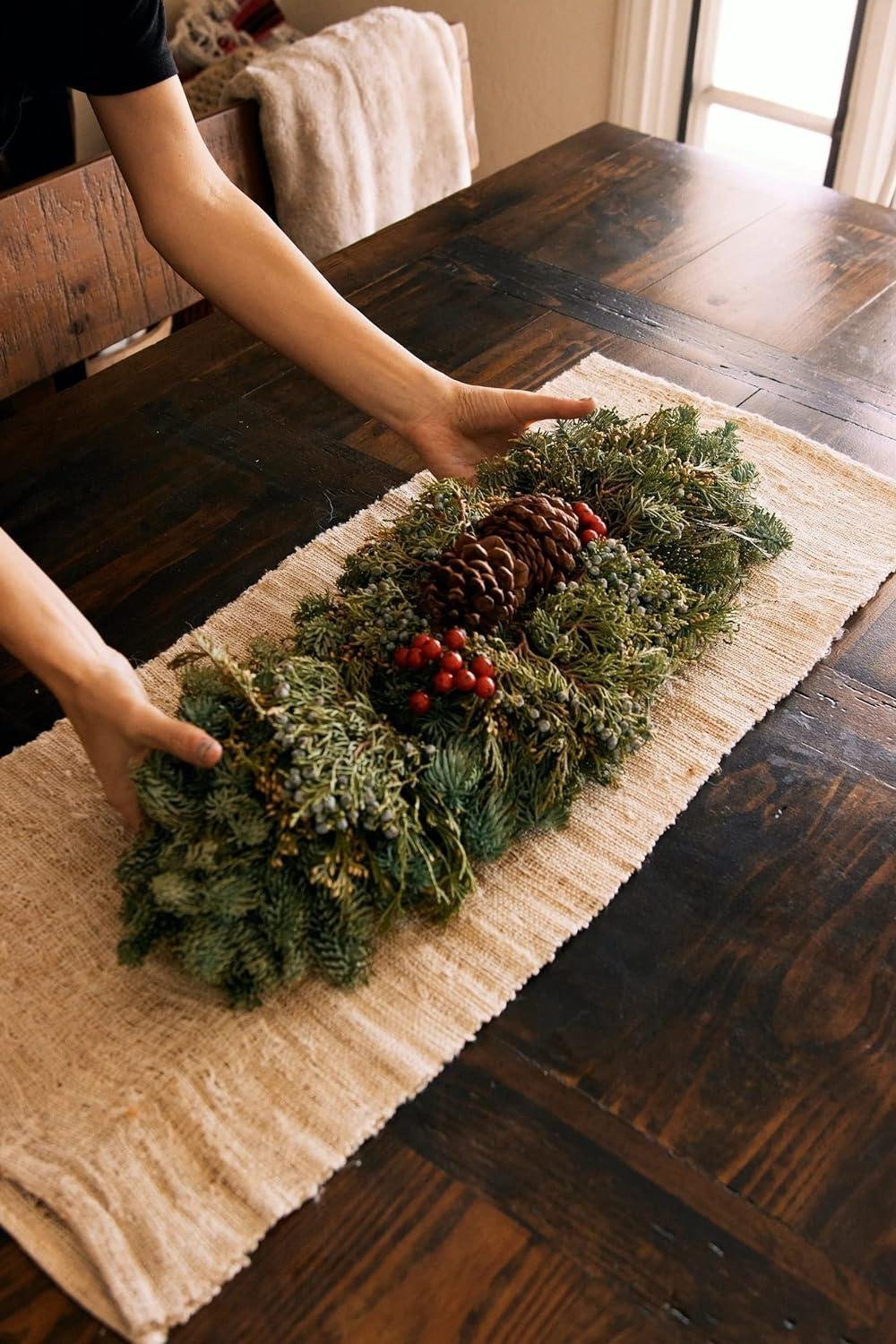 Lively Root Holiday Noble Fir, Juniper & Cedar Swag Centerpiece, Holiday/Christmas Table Decoration 2-Pack