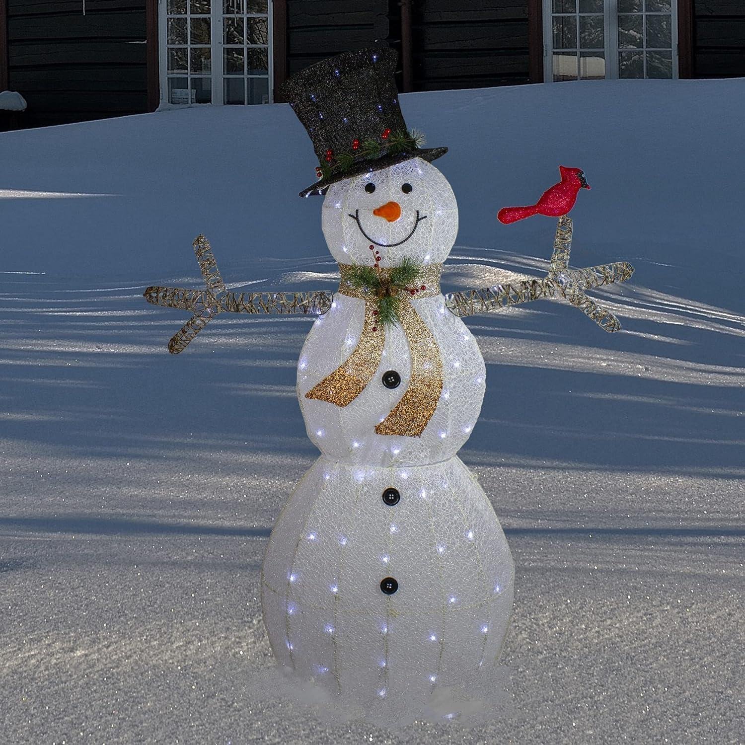 - White And Black Snowman Lighted Christmas Decoration