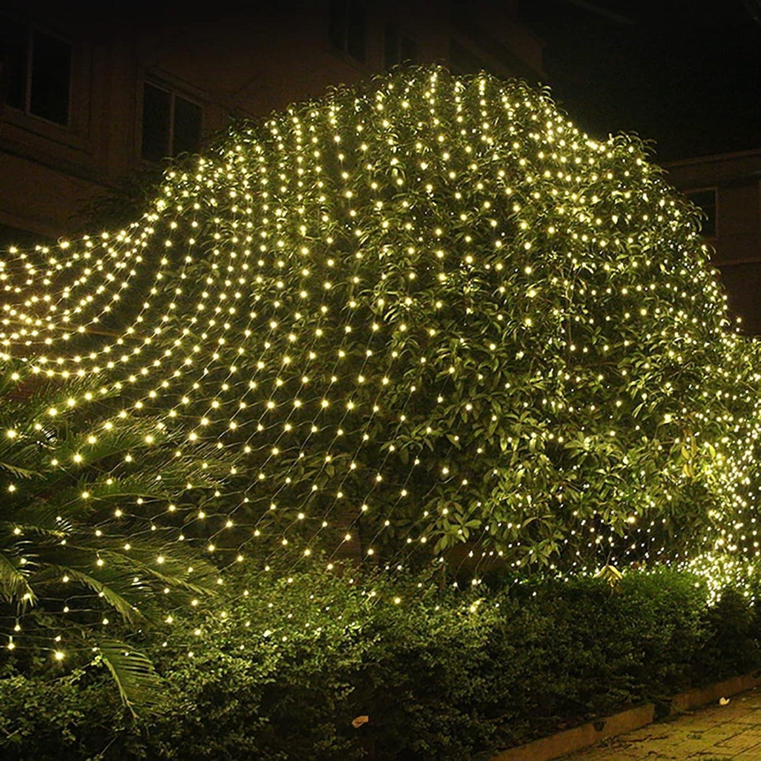 Outdoor Christmas Net Lights Connectable String Lights Outdoor Waterproof Mesh Lights with 8 Modes Hanging Net Light for Xmas Trees New Year Bushes Party Weddings-Warm White 6m x 4m 880led