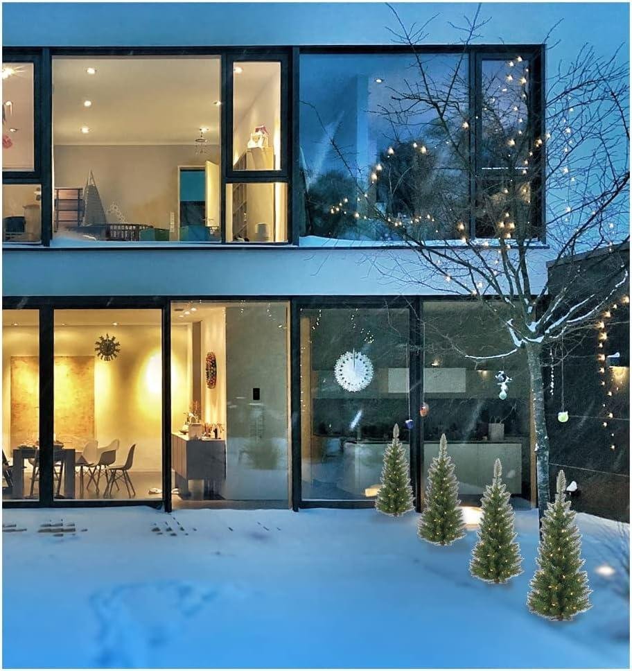- Light up your pathways or driveway with this set of 4 Christmas Cedar Pine trees