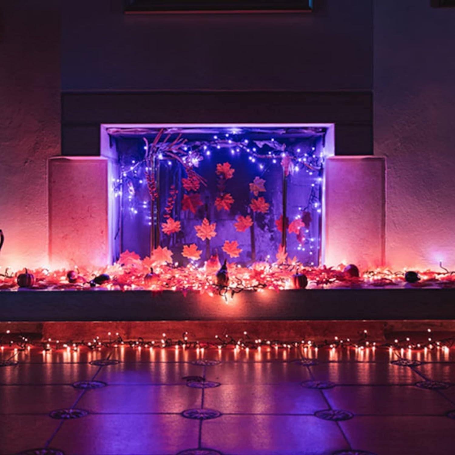 - App-controlled LED 250 bulb string lights can change colors which make the perfect holiday decoration for indoor and outdoor setups