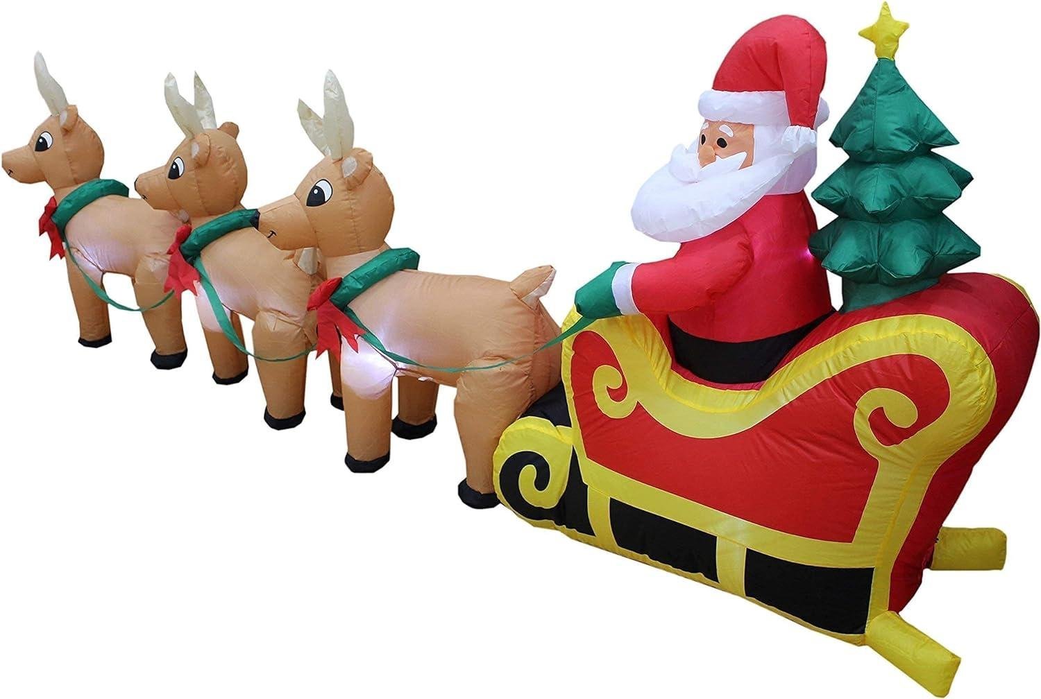 - 8 Foot Long Christmas Inflatable Santa on Sleigh with 3 Reindeer and Christmas Tree Inflated size measures (L x W x H): 96 x 14 x 36 inches