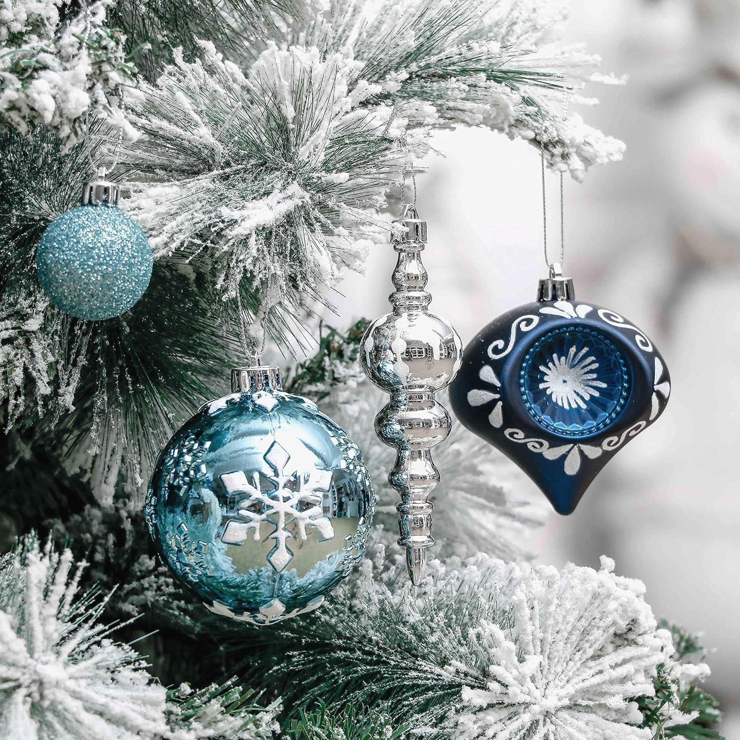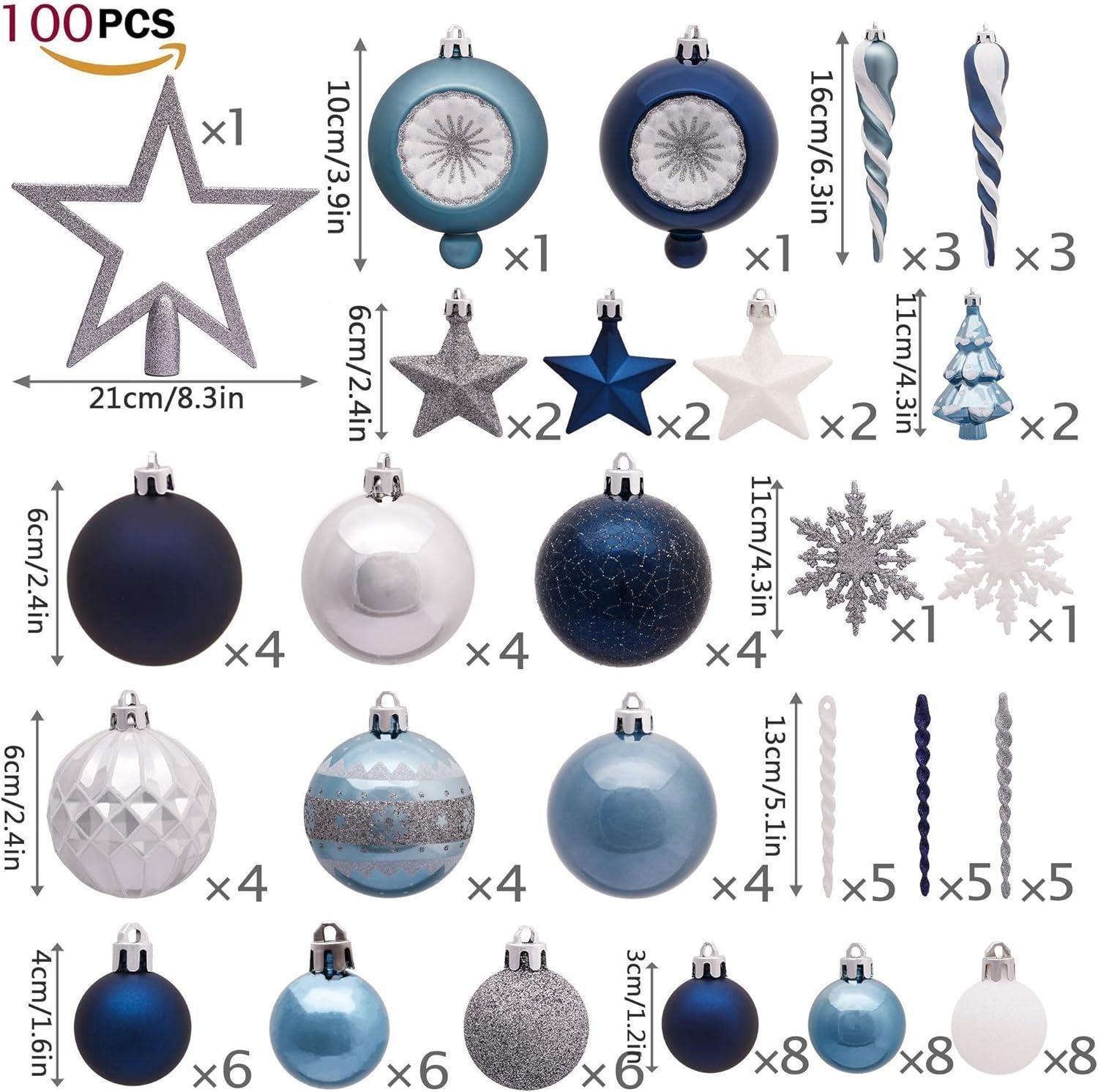 - Christmas Decor Value Bundle | Bundle includes 16ct 80mm Winter Wishes Blue Silver Christmas balls, 70ct different shaped and sizes Winter Wishes Blue Silver Christmas ornaments, 100ct different shaped and sizes Winter Wishes Blue Silver ball ornaments, 35ct 70mm Winter Wishes Blue Silver Xmas ornaments