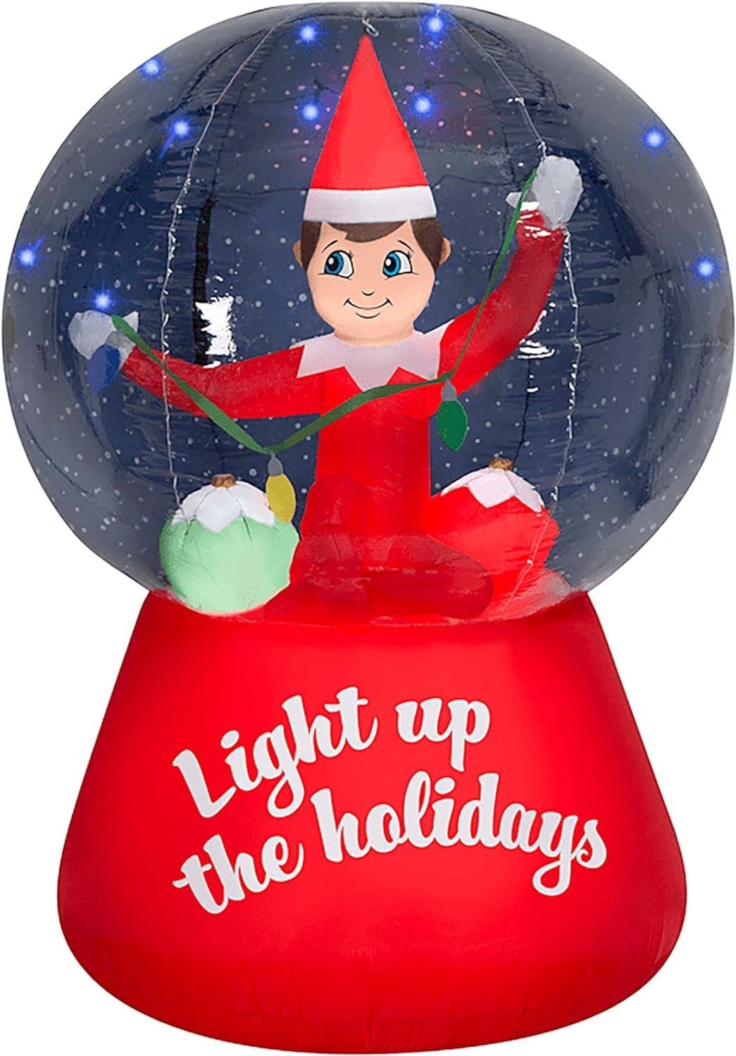 Gemmy 6′ Tall Christmas Inflatable Elf on The Shelf Christmas Snow Globe Indoor/Outdoor Decoration