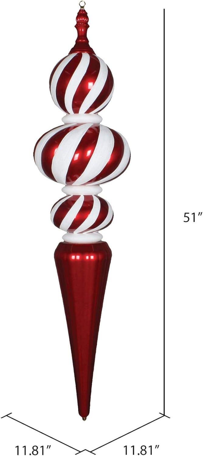 Vickerman 62 Jumbo Candy Finish Finial Stripe Ornament, Shatterproof Plastic, Holiday Christmas Tree Decoration, Red and White